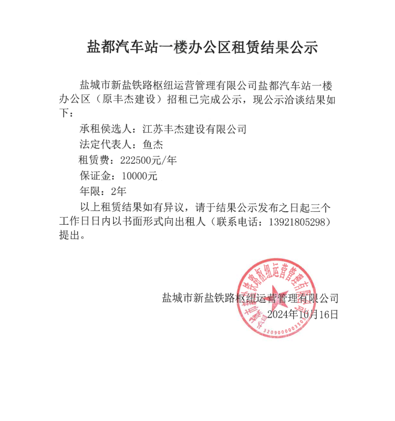 關(guān)于鹽都汽車站商鋪招租結(jié)果公示